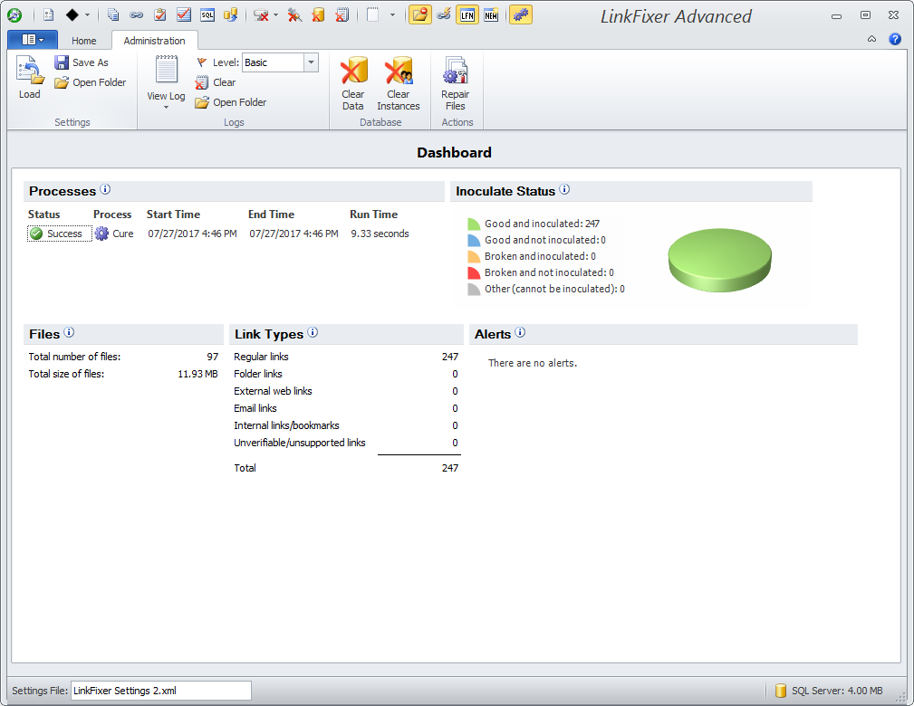 When you have selected your folders, filters and other settings, go to the "Administration" tab.