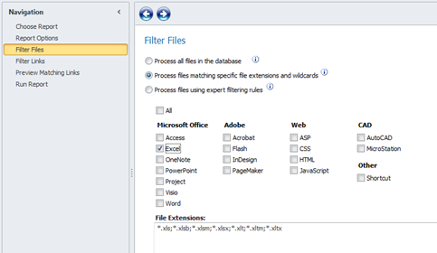 - Check the “Excel” option to process only Microsoft Excel files as shown below.