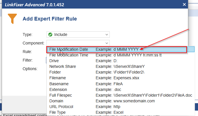 Next set the "Component" to "File Modification Date".